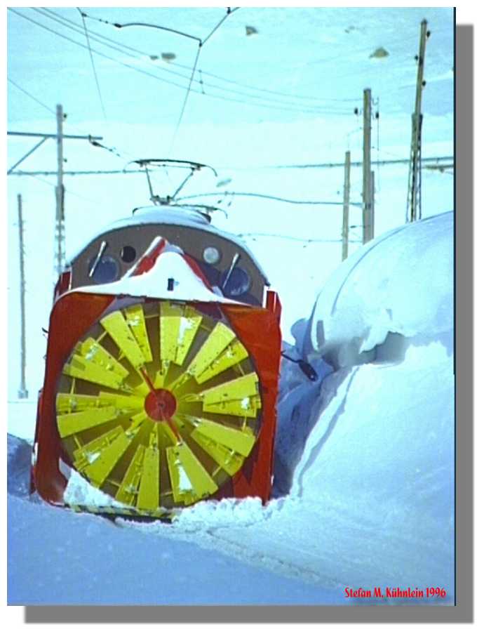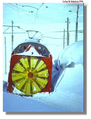 Dampfschneeschleuder auf dem Bernina Pass im Jahre 1996 bei der Sonderfahrt "Feuer und Eis". Ein Super Erlebnis.